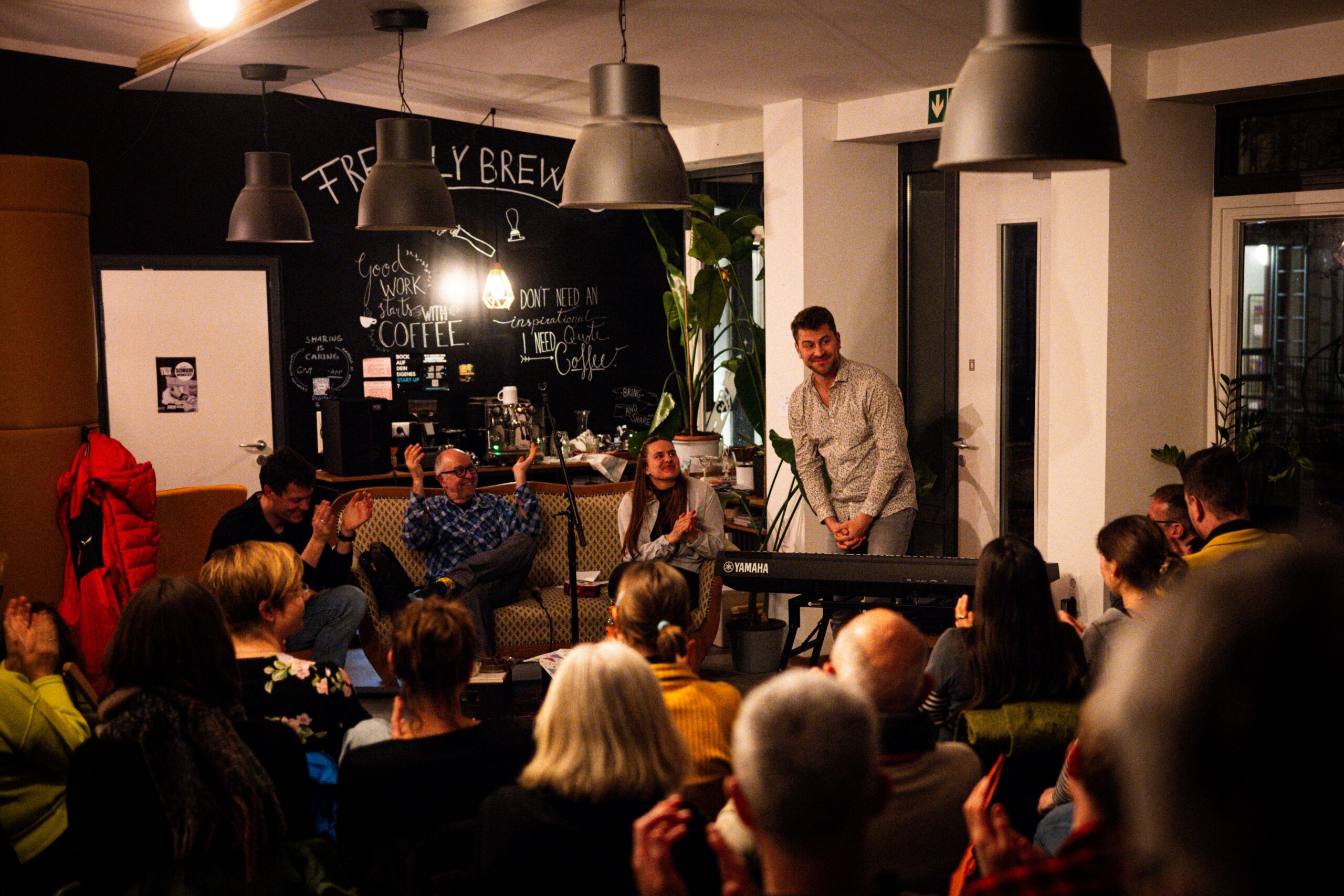Der Co-Working-Space „Kairos13“ in der Karlsruher Innenstadt dient als Location für den POETRY TALK und zeichnet sich durch seine stilvolle und einladende Atmosphäre aus.